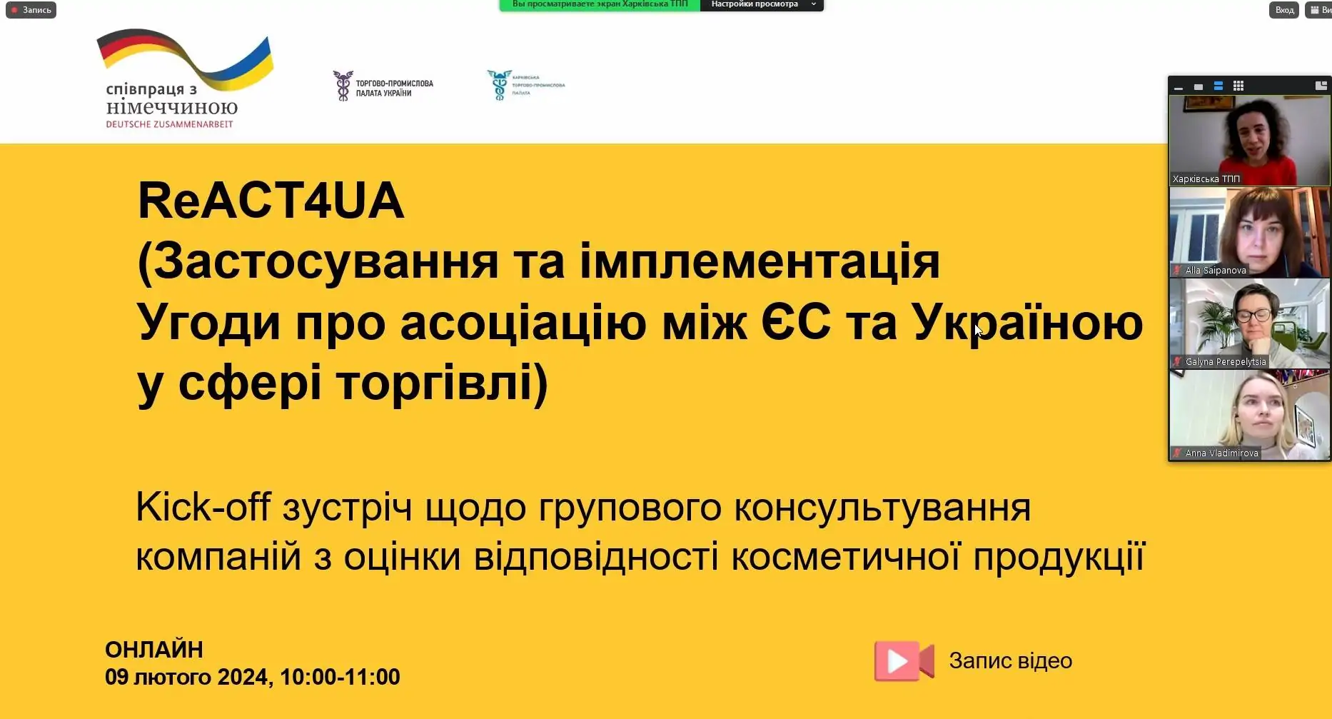 9 лютого 2024 року відбулась перша зустріч щодо групового консультування виробників косметичної продукції, які планують експортувати до ЄС.
