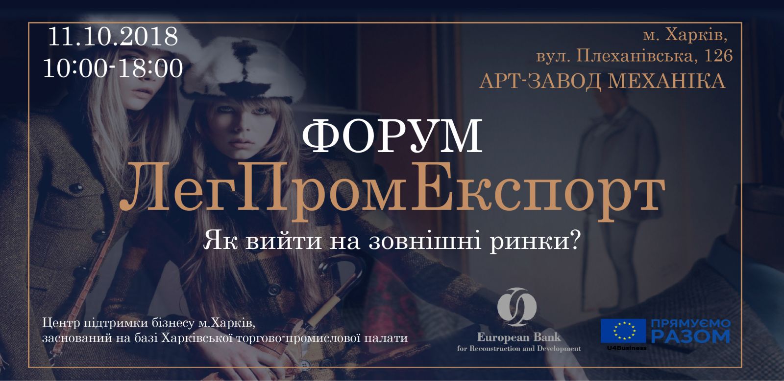 Запрошуємо Вас 11 жовтня 2018 року прийняти участь у професійному заході Форумі Легпромекспорт, який буде проходити в рамках виставки TextileExpoKharkiv на АРТ-ЗАВОДІ МЕХАНІКА (вул. Плеханівська, 126).